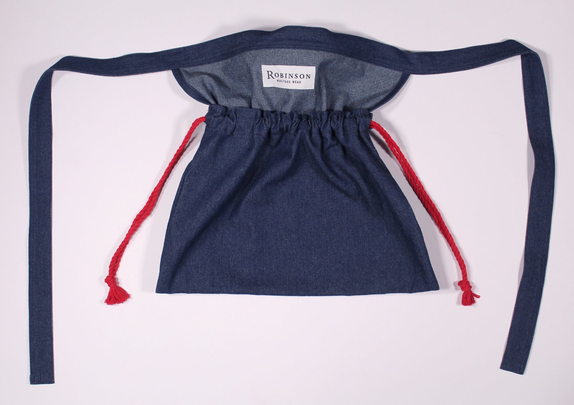 The 'Apron Ditty Bag' is based on an original WW2 American Red Cross bag. In line with the original design, it can be used in a variety of ways: as an apron tied around the waist, as a drawstring bag or you can tie the ends together to use as a shoulder bag. Our design comes with a couple of upgrades though - a large internal zip pocket to keep your valuables safe and a d-ring to secure your keys.