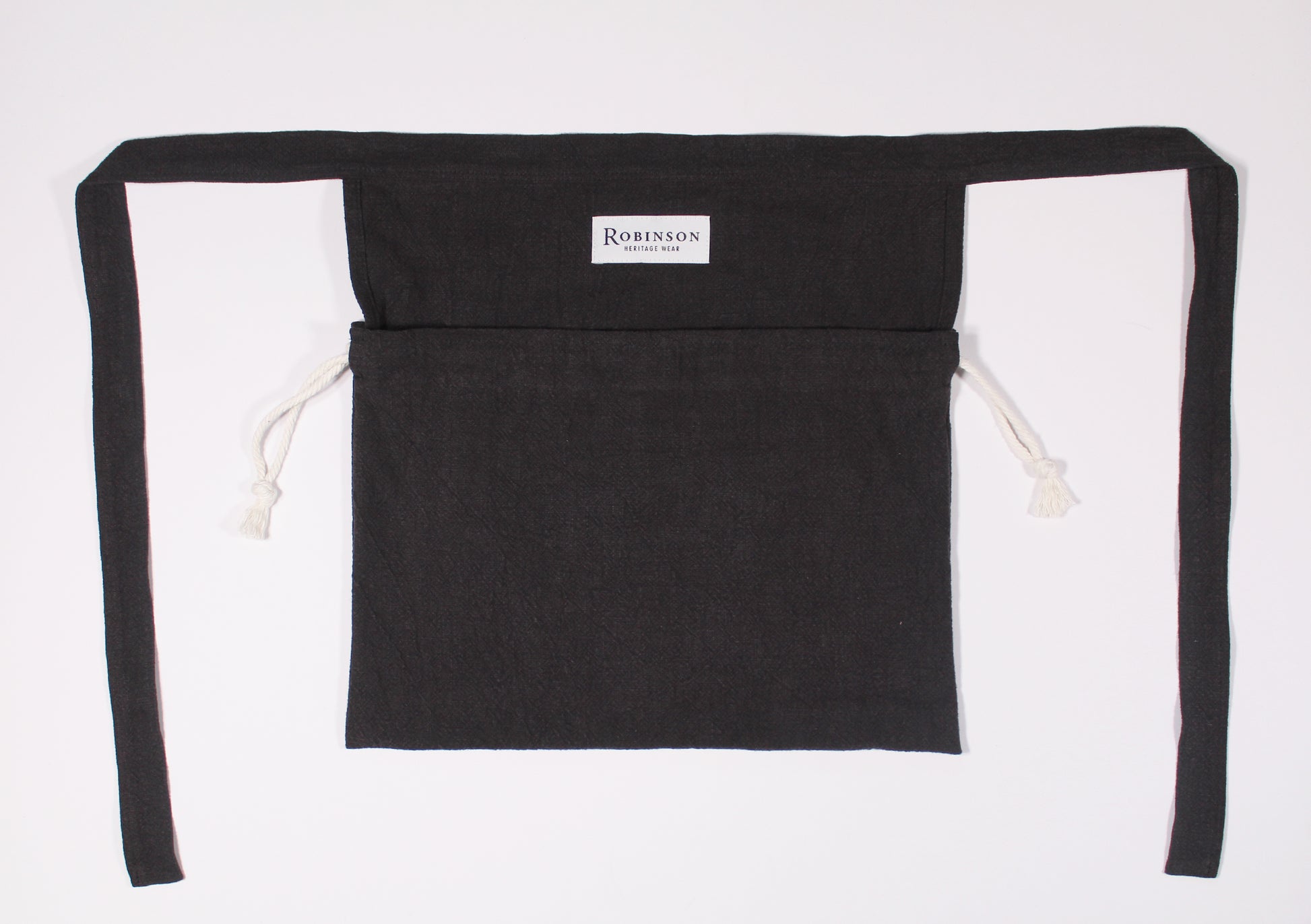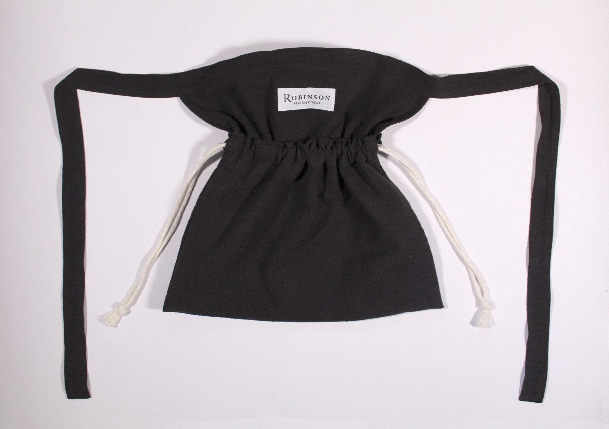 The 'Apron Ditty Bag' is based on an original WW2 American Red Cross bag. In line with the original design, it can be used in a variety of ways: as an apron tied around the waist, as a drawstring bag or you can tie the ends together to use as a shoulder bag. Our design comes with a couple of upgrades though - a large internal zip pocket to keep your valuables safe and a d-ring to secure your keys.